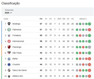 A vitória levou o Botafogo a 67 pontos na tabela. Agora, a diferença para o Palmeiras está em seis pontos, faltando seis rodadas para o fim do campeonato.