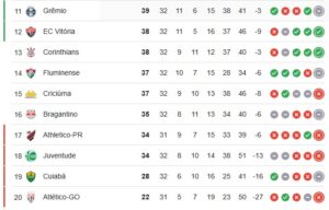 O Vasco permanece na nona colocação, com 43 pontos, e pode ser ultrapassado pelo Atlético-MG, que tem 41, e enfrenta o Atlético-GO na quarta-feira.