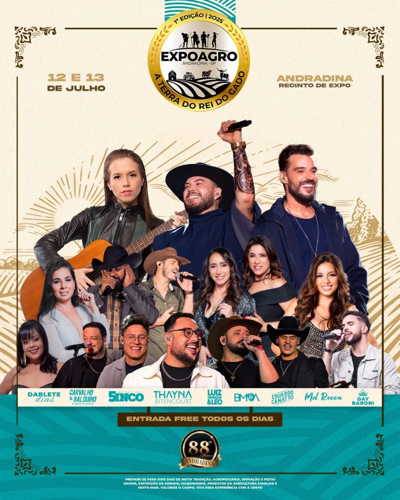 Nos dias 12 e 13 de julho, o Recinto de Exposições Miguel Rodrigues da Silva, em Andradina, também vai celebrar os 88 anos de fundação de Andradina com um evento que remete à tradição das antigas exposições agropecuárias: a Expoagro. O evento +é uma oportunidade para mostrar a força do agronegócio e da agricultura familiar […]