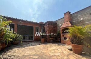 São 700 metros quadrados, três quartos, sendo uma suíte, duas salas, quatro banheiros, uma biblioteca, cozinha e varanda no primeiro piso. O terraço conta com piscina, churrasqueira, sauna, despensa, banheiro, jardim e um espaço gourmet.