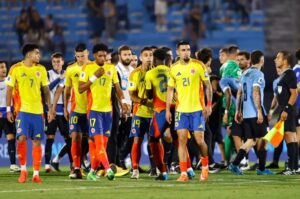 São eles: Camilo Vargas, Daniel Muñoz, Johan Mojica, Carlos Cuesta, Juan Fernando Quintero, Jhon Arias, Kevin Castaño, Jorge Carrascal, John Jader Durán e Luis Díaz. Caso recebam mais uma punição, os jogadores ficariam fora do confronto contra o Brasil, na próxima rodada.