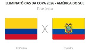 Colômbia e Equador se enfrentam, nesta terça-feira, pela 12ª rodada das Eliminatórias da Copa do Mundo 2026 e no último compromisso das seleções em 2024. Depois da última derrota para o Uruguai, os colombianos precisam para recuperar a vice-liderança do torneio. Enquanto os equatorianos querem garantir uma posição mais confortável no G-6. A bola rola às 20h (horário de Brasília).