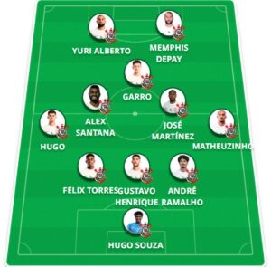Pendurados: Breno Bidon, Cacá, Hugo, Hugo Souza, Matheus Bidu, Matheuzinho, Memphis, Pedro Henrique, Pedro Raul, Rodrigo Garro, Ryan e Talles Magno.