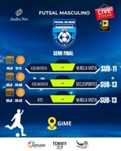 As semifinais do futsal de base realizadas no GIME foram repletas de emoção e grandes disputas. No Sub-11, a Secretaria de Esportes venceu o Atlético Nova Independência por 5×2. Em um jogo acirrado, a Escola Batista de Três Lagoas empatou com os Meninos do Bela Vista de Três Lagoas em 2×2, mas garantiu a vaga na final ao vencer nos pênaltis por 4×2. A grande final será entre a Secretaria de Esportes e a Escola Batista.