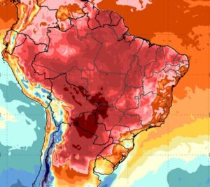 No Centro-Norte, as temperaturas devem seguir muito elevadas, com máximas na casa dos 40°C.