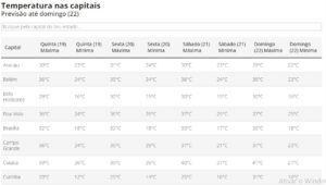 Veja como ficam as temperaturas nas capitais nos próximos dias, segundo o Inmet: