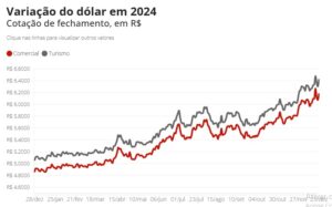 Às 09h49, o dólar operava em alta de 0,04%, cotado em R$ 6,1563. Na máxima do dia, chegou a R$ 6,1936. Veja mais cotações.
