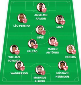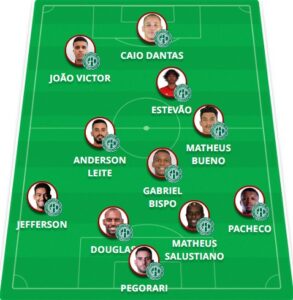 • Quem está fora: Luan Dias e Emerson (suspensos por três cartões amarelos), Bruno Mendes (lesionado); Marlon Douglas e Airton (transição física).