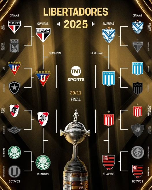 Libertadores 2025: veja como ficaram os confrontos das quartas de final da competição.