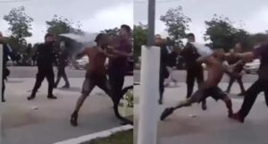Em imagens que circulam pelas redes sociais, Nego do Borel aparece desferindo golpes contra um homem não identificado. Durante a luta, agentes policiais aparecem e usam spray de pimenta para conter a briga.