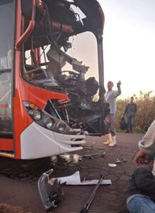Ônibus que transportava trabalhores da Usina colide em retroescavadeira nesta manhã