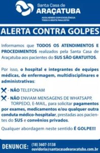 Santa Casa de Araçatuba emite alerta sobre golpes a pacientes