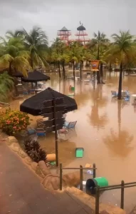 Temporal causa alagamentos e fecha parque aquático em Olímpia