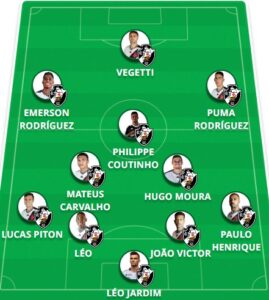• Pendurados: Hugo Moura, Léo, Lucas Piton, Mateus Carvalho, Rayan e Vegetti.