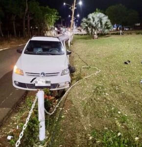 Na madrugada deste sábado (21), policiais militares em serviço na modalidade Atividade Delegada por Nova Independência avistaram indivíduo conduzindo veículo na via pública que, em dado momento, perdeu o controle e subiu na calçada, atingindo um poste.