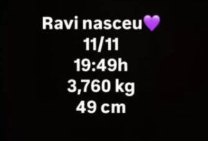 No sábado, 9, a influenciadora já tinha publicado um vídeo bem-humorado sobre a “demora” de Ravi em nascer. “Eu jurava que, na virada da lua, meu filho ia ver.Será que na virada do dia 15 a lua vai me trair de novo?”, escreveu. Porém, Viih não precisou esperar tanto. Já na segunda-feira à noite, o bebê nasceu.